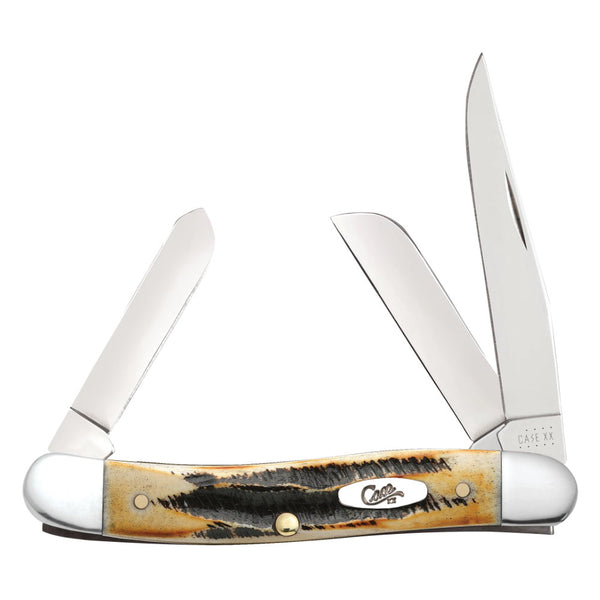 The Case Medium Stockman 6.5 BoneStag Knife is a Case Knives bestseller that folds three popular blades into a convenient everyday carry. This knife's bone handles are made to look beautifully worn. They are accented with special jigging, and are hand-flamed to look and feel like genuine stag antler.