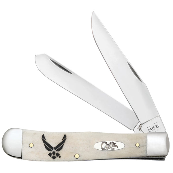 The Case United States Air Force Smooth Natural Bone Trapper Pocket Knife is an officially licensed product of the US Air Force. This striking version of the Case Trapper features an embellished front handle with the USAF logo and an inlaid Case oval insignia.