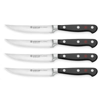 The handles of the knives in this set are genuine plum wood with the iconic Wusthof triple-rivet design, and the grain and pattern of each handle is unique.