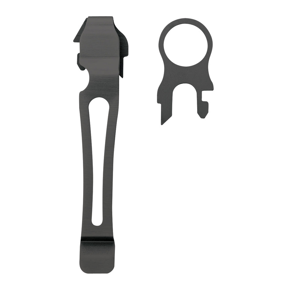 Make carrying your Leatherman tool easier without a sheath when you use either the black oxide quick-release lanyard ring or black oxide removable pocket clip in this convenient set. The quick-release lanyard ring has an extra-wide lop and detaches from your Leatherman tool as soon as you press the lock and pull.