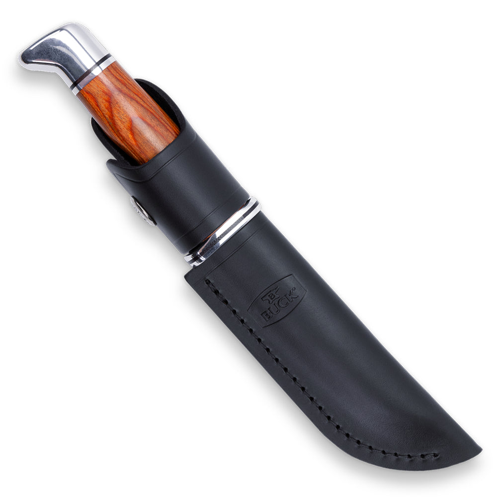 Buck's exclusive Paul Bos heat-treating and testing process maximizes both edge retention and performance. The blade is hardened to a Rockwell Hardness of RC57-58 through a rigorous heating, freezing and reheating process.