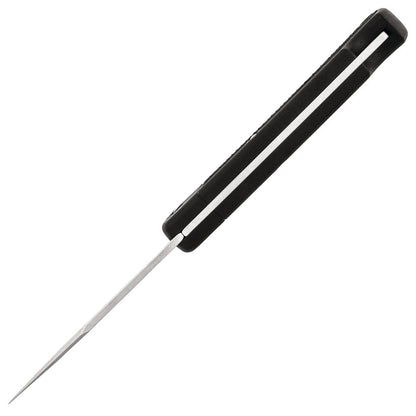 The clip-point blade has a crescent tip that creates a thinner blade edge with a sharper point. This allows for detail work and cutting in tight spaces. It is also well-suited for creating punctures such as new holes in your belt.