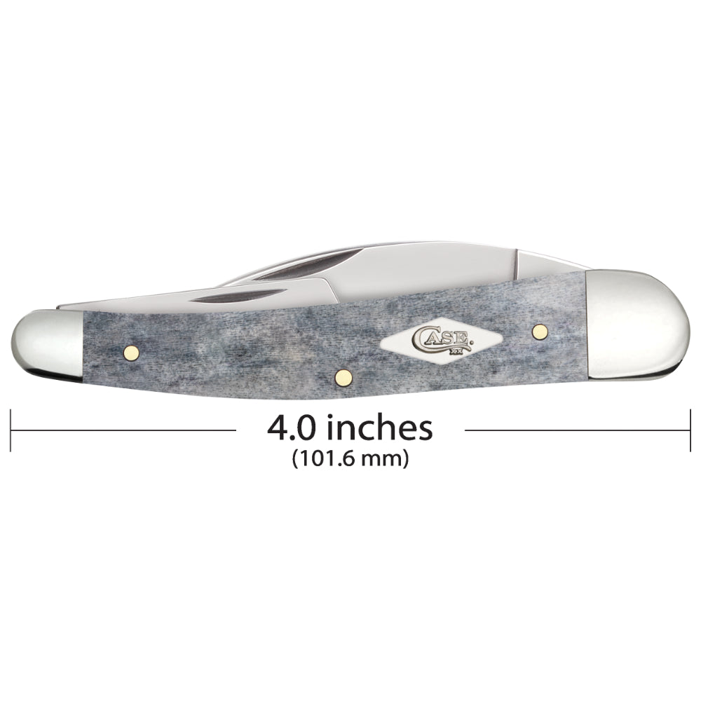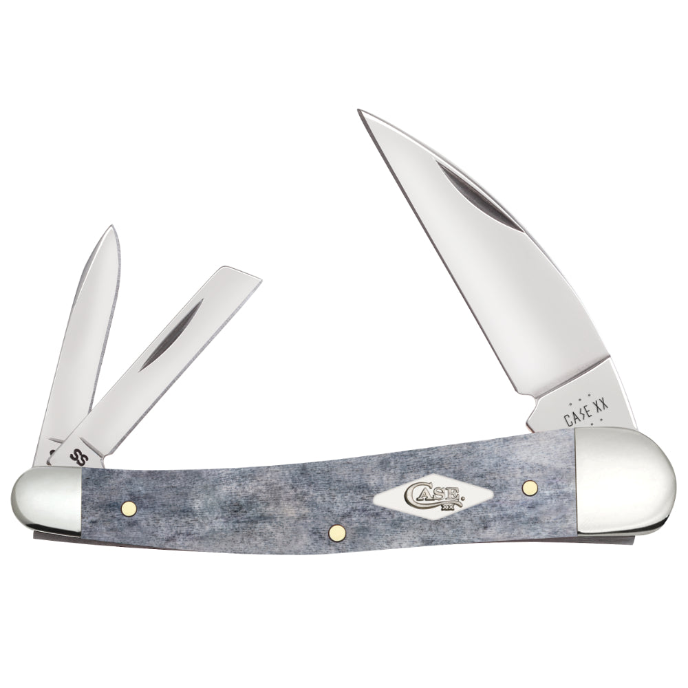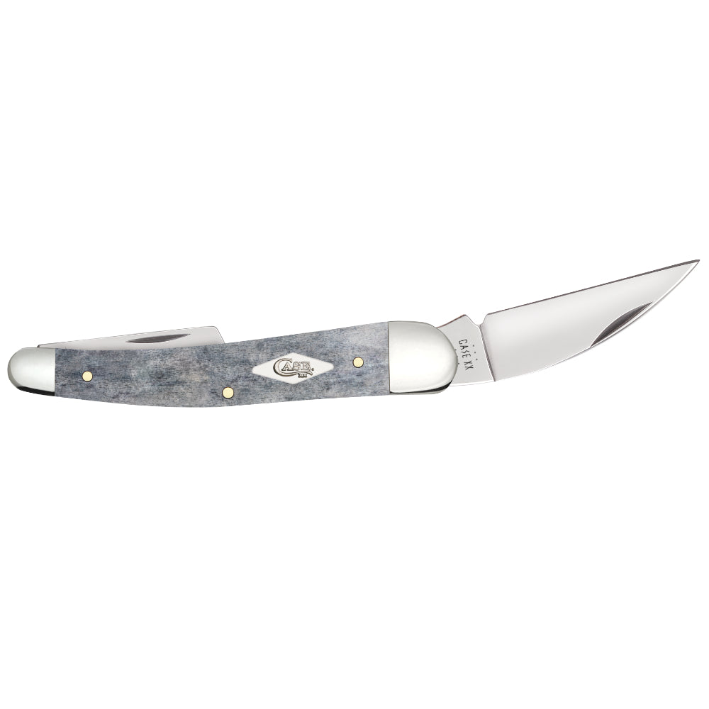 This knife's Smooth Gray Bone handles have a sophisticated look, and they are finished with smooth polished nickel silver bolsters and a Case diamond-shaped shield.