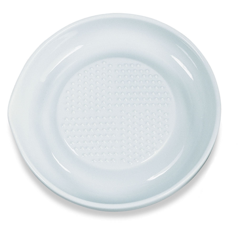 The Kyocera 6.5" Medium Grater, made from an advanced ceramic, is light-weight and easy to use. This 6.5-inch white grater, with non-slip base, will shred cheese, garlic or ginger with ease, making it a great addition to your kitchen. This ceramic dish grater does not absorb oils, flavors or colors from food, making it easy to rinse clean and wipe dry.