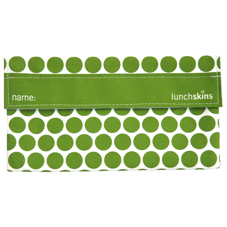 Disposable plastic bags may have been all the rage in the 1960's, but things have changed. Now, we need something that is reusable, durable, easy to clean and fun. Lunch Skins reusable snack bags fit the bill.Made of a quick-drying food safe German fabric used for years in fine bakeries and restaurants, these colorful snack bags replace countless plastic bags. Lunch Skins are moisture and grease proof. Best of all, they are dishwasher safe.