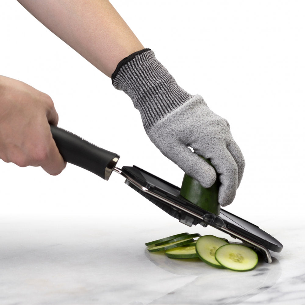 The Microplane Cut Resistant Glove is the perfect safeguard against cuts and scrapes from accidental contact with sharp blades such as graters, zesters, mandolins and knife blade edges.