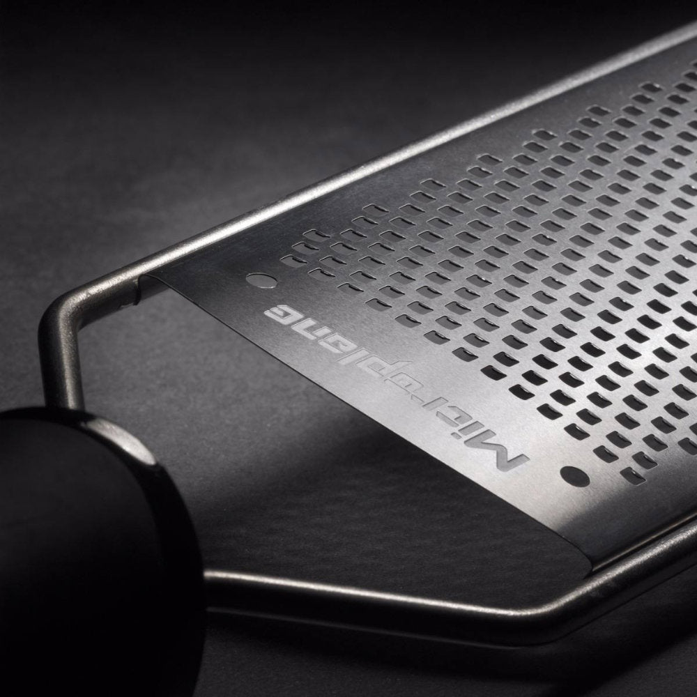 The Microplane Gourmet Series Fine Grater is a hand-held grater designed specifically for zesting citrus and grating garlic, ginger, cinnamon, peppers and hard cheeses.