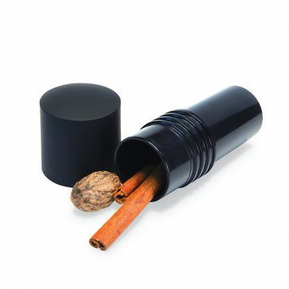 This mill also includes an airtight compartment at the top for storing whole nutmeg and pieces of cinnamon sticks.