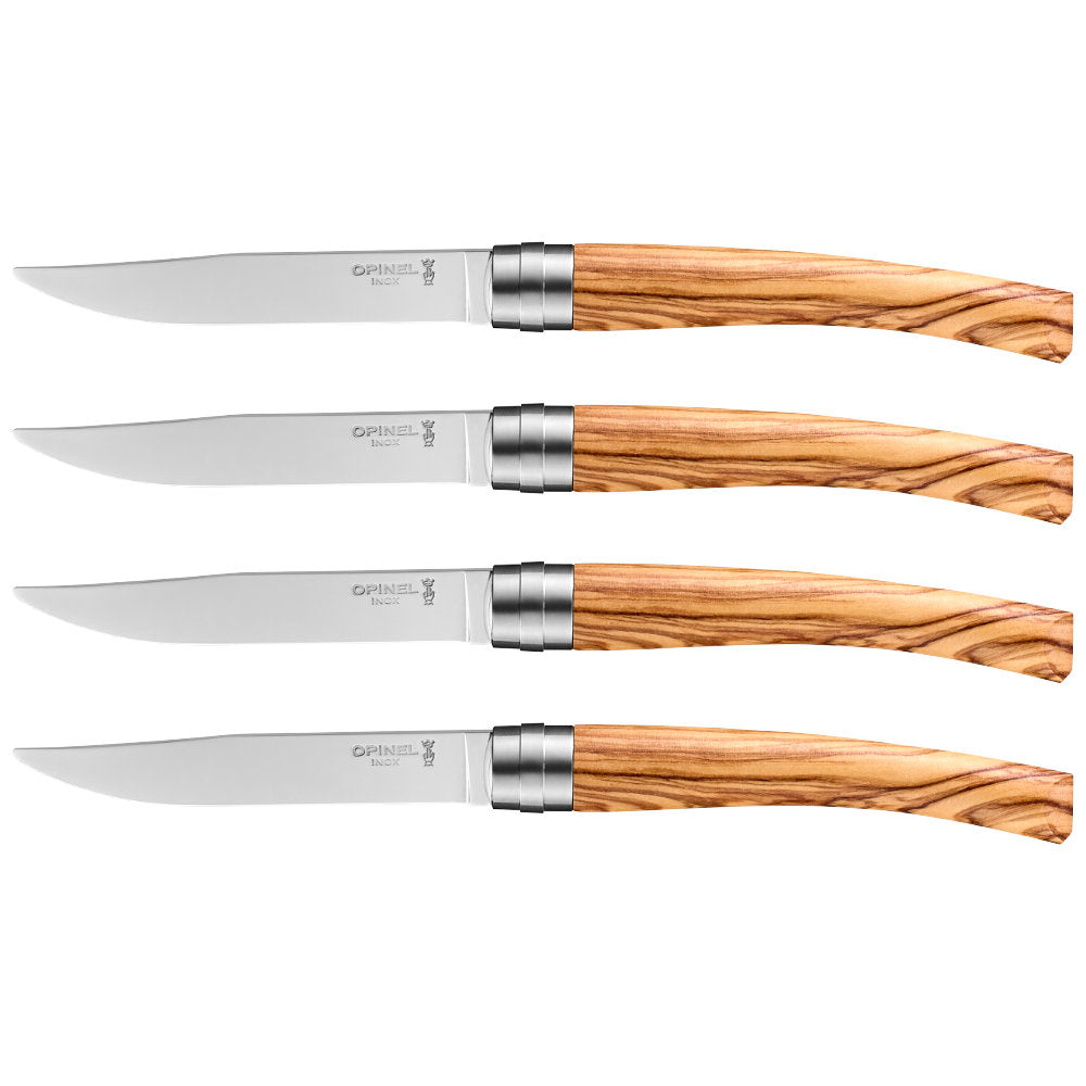 Crafted in the French Alps, the 4 knives in this set feature colorful hornbeam handles varnished to protect them from moisture and dirt.