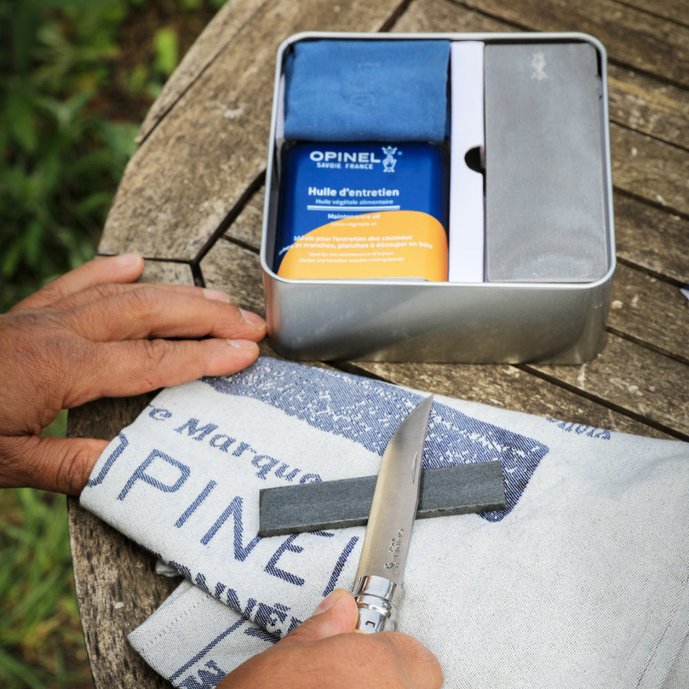 The Opinel Knife Maintenance Kit contains everything you need to keep your Opinel knife in good condition from the tip of the blade to the heel of the handle.