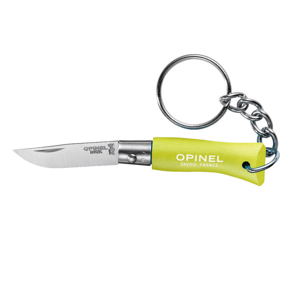 The Opinel No.2 Traditional Colorama Stainless Steel Folding Knife is the smallest folding knife in the Opinel line. This tiny keychain companion, which is available in an array of bright hues, boasts a small but strong 1.36-inch blade and is under 2-inches long when folded closed.