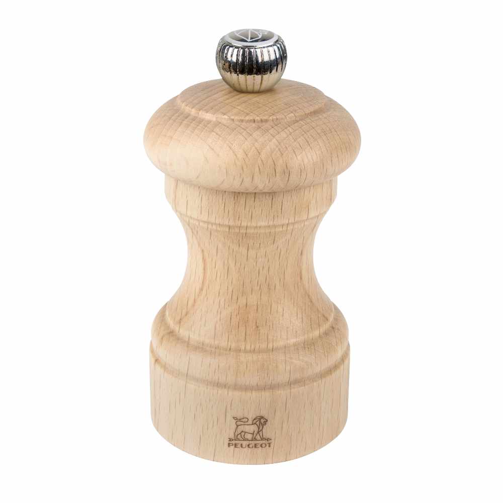 The Bistro 4" Natural Wood Salt Mill by Peugeot is made from sustainably-harvested French beech wood that is dried, turned and finished before the mill's final assembly. This classic, compact mill with a natural finish is the perfect size for any table - from dining room to kitchen.