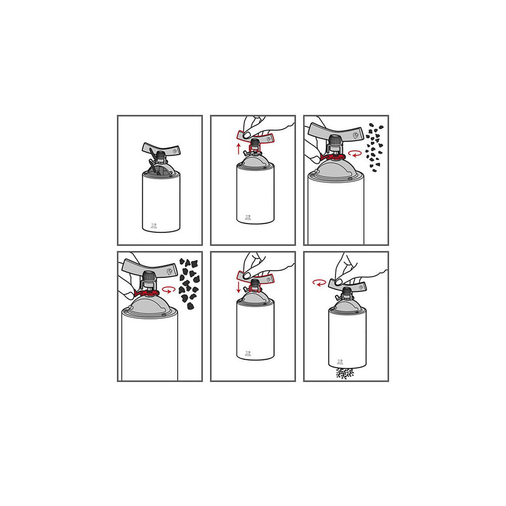 The Isen Mill has a classic adjustable grinding system. To change the coarseness of the pepper, simply lift up the handle on the top of the mill, and turn the small piece below it clockwise for a finer grind, and counter-clockwise for a coarser grind. (See illustration.)