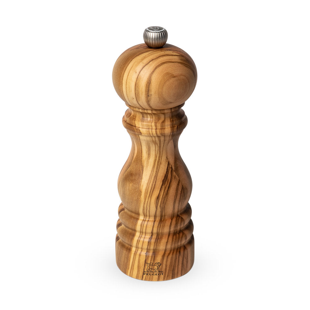 The Paris Olive Wood 7" Classic Salt Mill by Peugeot is made of beautiful genuine olive wood with rich, contrasting natural wood grain. This warmly colored wood is oil finished for a silky-smooth feeling.