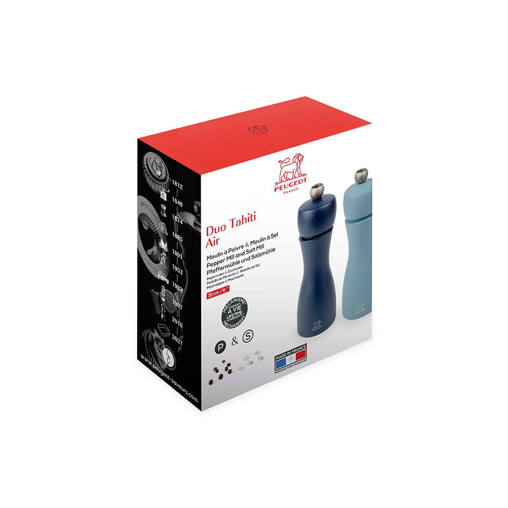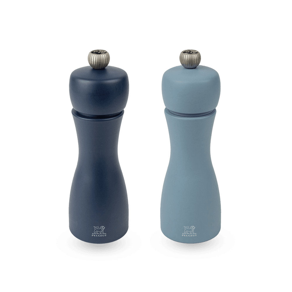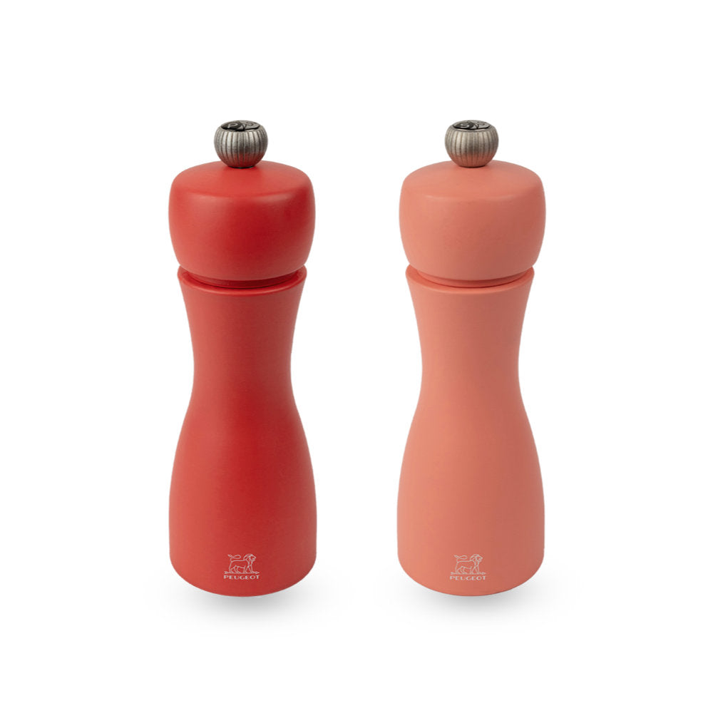The Tahiti 6" Salt & Pepper Mill Set by Peugeot is made from sustainably-harvested French beech wood that is dried, turned and finished before the mills' final assembly. This salt and pepper mill set's bright colors will bring style to any table.