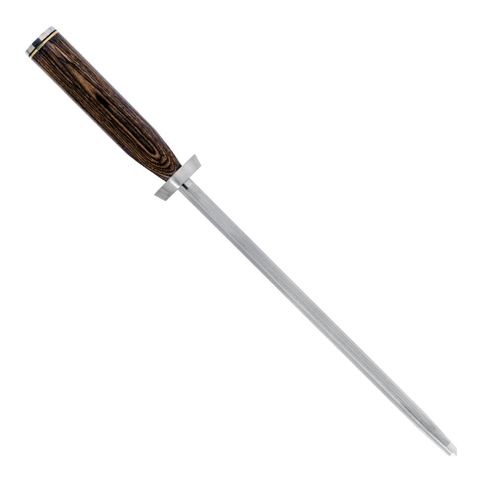VG-MAX is the newest in the line of VG super steels, building on the highly successful VG10 formula. VG-MAX contains more carbon, which provides strength and durability to a knife blade. Added chromium provides wear and corrosion resistance. Higher cobalt content enhances the strength of the blade, and increased tungsten allows the steel to be very fine-grained so the edge can be extremely fine and sharp. Molybdenum contributes to corrosion resistance and strength, while vanadium improves impact resistance and allows the steel to form vanadium carbides, which enhance cutting performance. Shun sharpens VG-MAX in its knife blades to 60-61 on the Rockwell Hardness Scale.A Bit About Shun