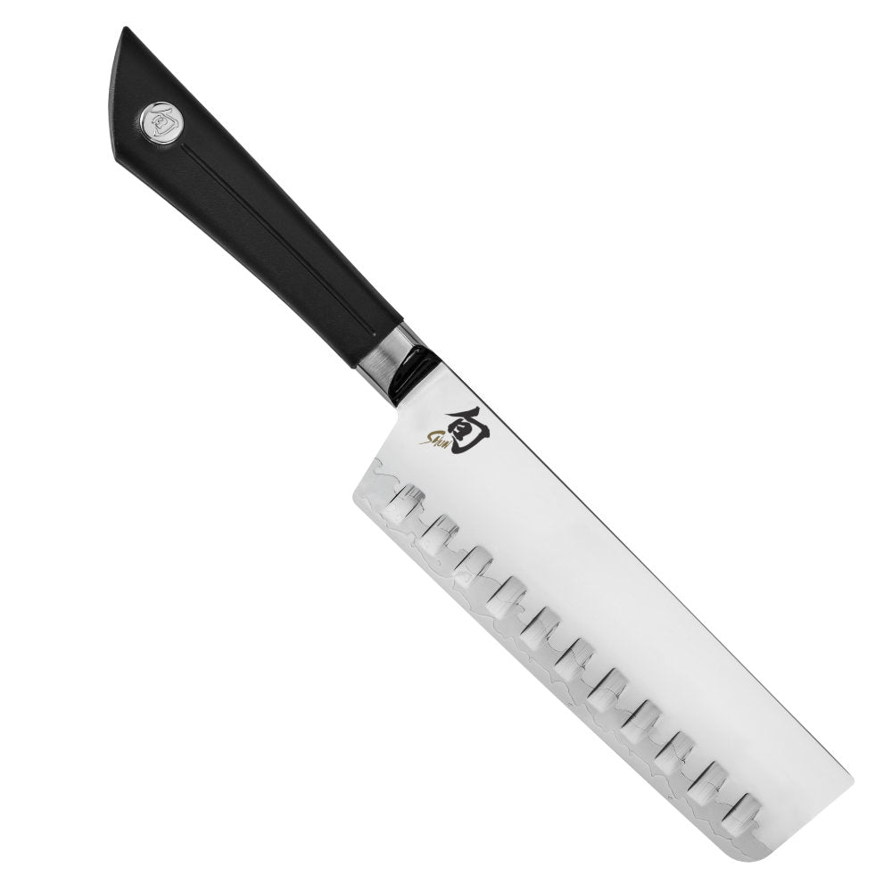 The Shun Sora 6-inch Nakiri Knife is a Japanese vegetable knife designed for slicing vegetables, fruit, cheese and charcuterie. It features a straight blade, edge and spine, making it perfect for simple push cuts often used in fruit and vegetable preparation. The blunt edge makes it extra safe to use, and the hollow ground blade creates pockets of air that discourage food from sticking to the blade.