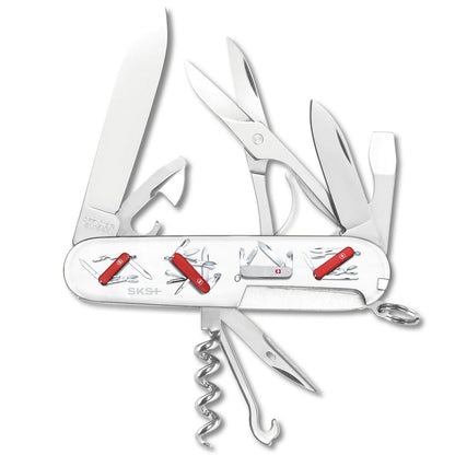 In 1884, the Swiss pioneer Karl Elsener founded his cutler's business. A few years later, he paved the way for an unparalleled company by developing the legendary "Original Swiss Army Knife" for soldiers in the Swiss Army. This Climber celebrates some of bestsellers in Victorinox's now diverse line of multi-tools.