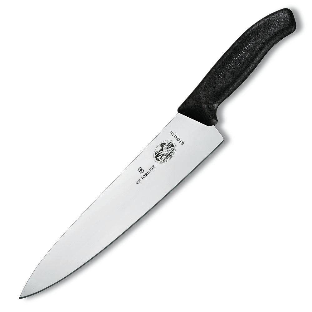 The Swiss Classic 10" Chef's Knife by Victorinox features an ergonomic handle that fits nicely in your hand, as well as a sharp blade that holds its edge.