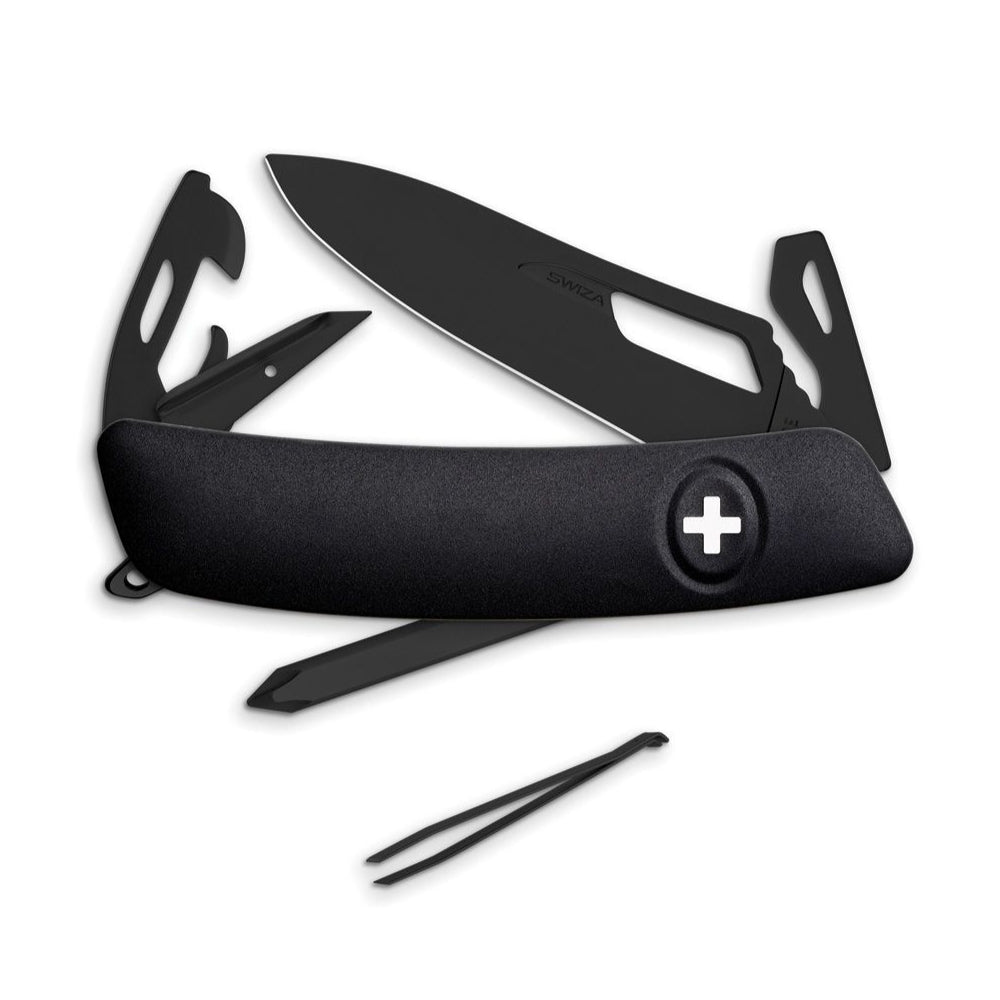 Swiza SH04 All Black Single Hand Opening Swiss Knife Features:
