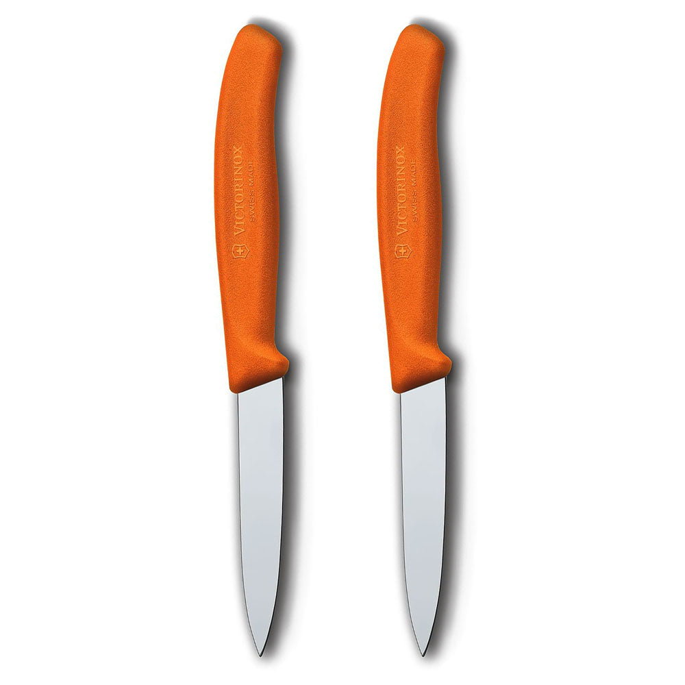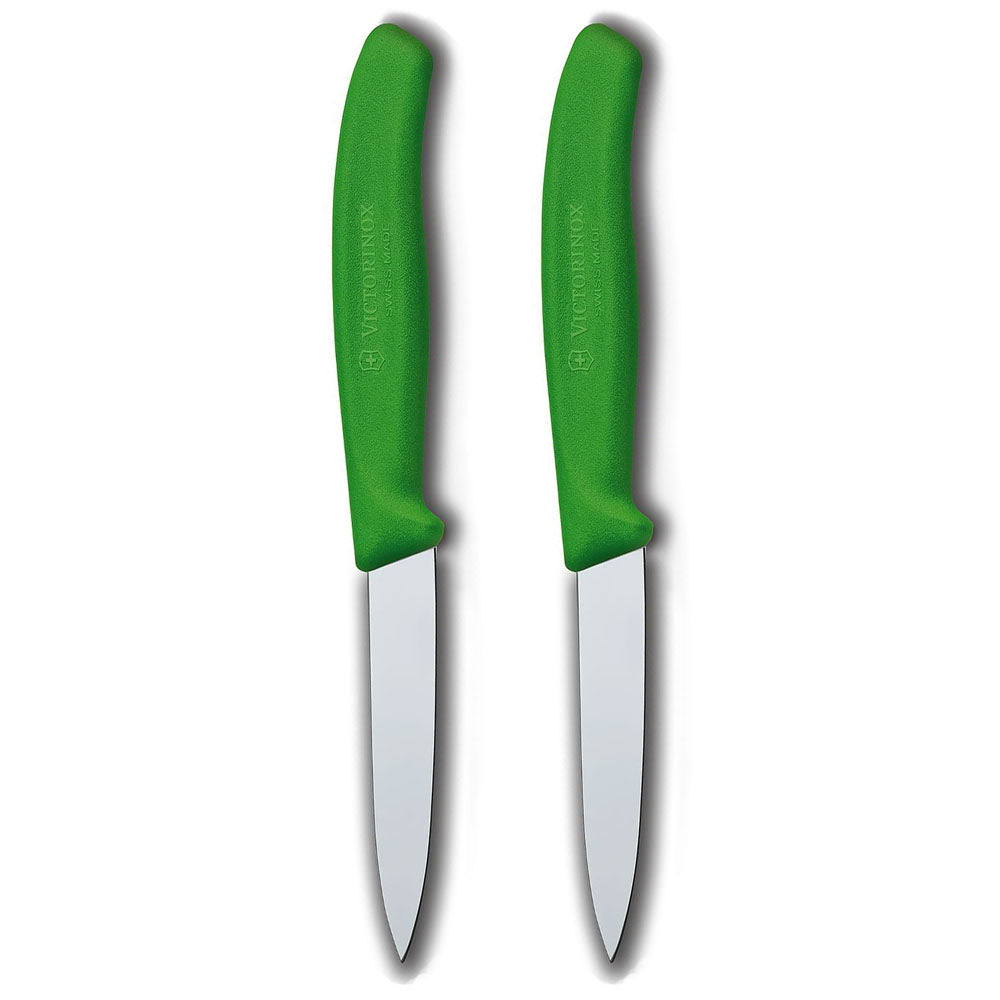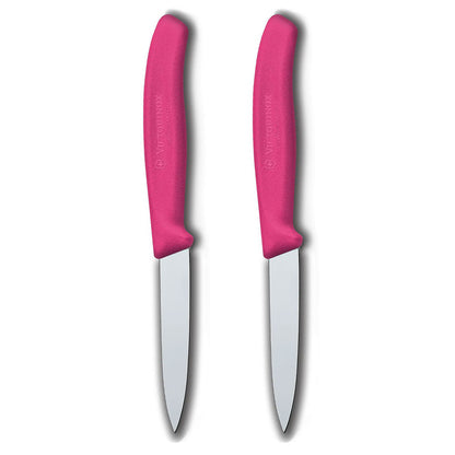 This Victorinox Classic Kitchen Set includes two Classic 3.25" Paring Knives. With their contoured nylon handles, these two all purpose knives are extremely lightweight and durable - the perfect addition to any chef's kitchen. These colorful knives will brighten your kitchen prep tasks.