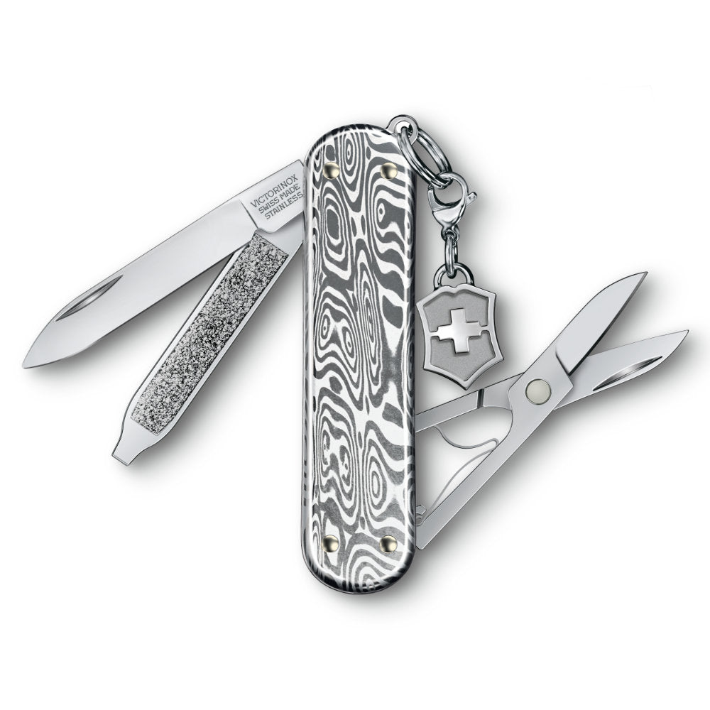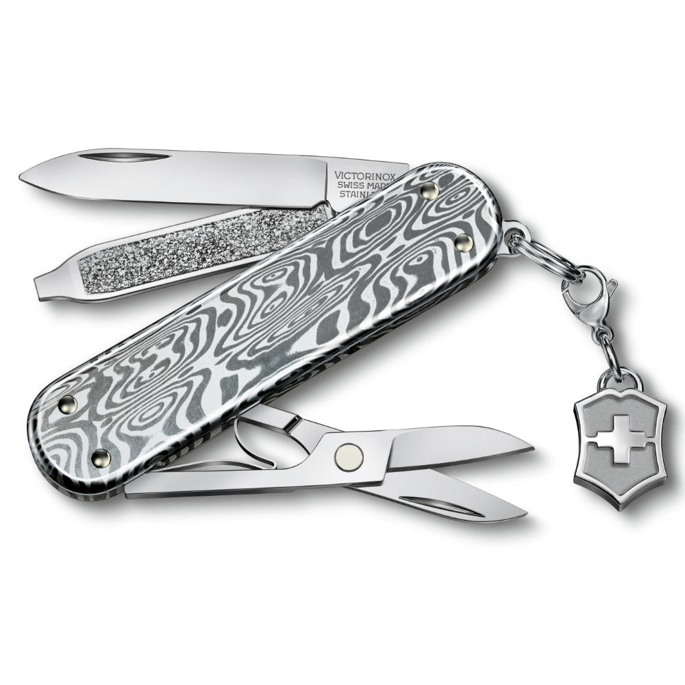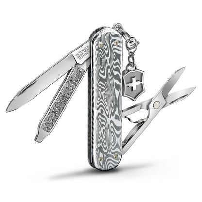 Tucked inside the Damast Classic SD are the features that have made the Classic SD Swiss Army Knife a bestseller and indispensable everyday carry - a small, sharp blade; scissors; and a nail file with a screwdriver tip.