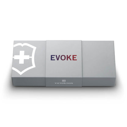 Engraving: Personalize the Victorinox Evoke Alox with up to 8 characters on the engraving panel beside the carry clip, and up to 6 characters on the blade.