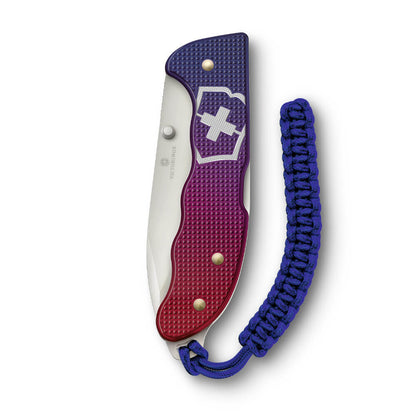The handle of this folding lockblade knife is made from Victorinox's popular aluminum oxide, or Alox, which gives this version of the Evoke a slim profile and makes it extremely durable. The handle's modern, ribbed, colorful finish makes this knife easy to hang on to.