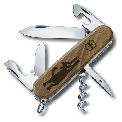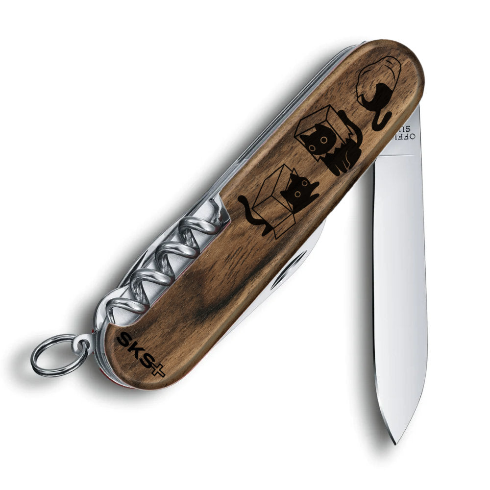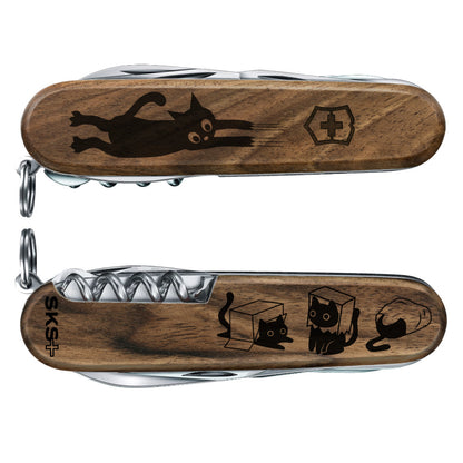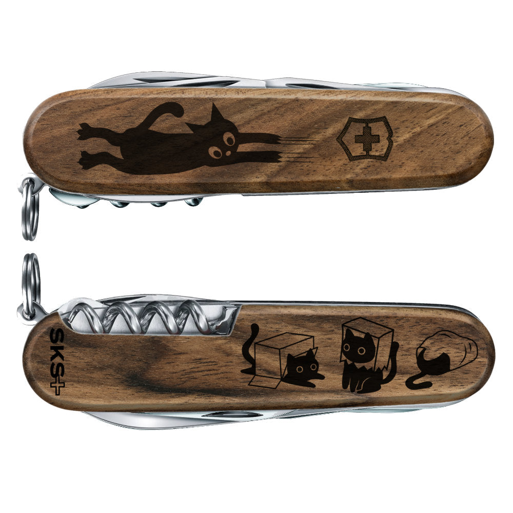 - Genuine Walnut Hardwood Handles with Exclusive Cats Design on the Victorinox Logo Side, and Room for Your Personalization on the Back Alongside Our Small Logo