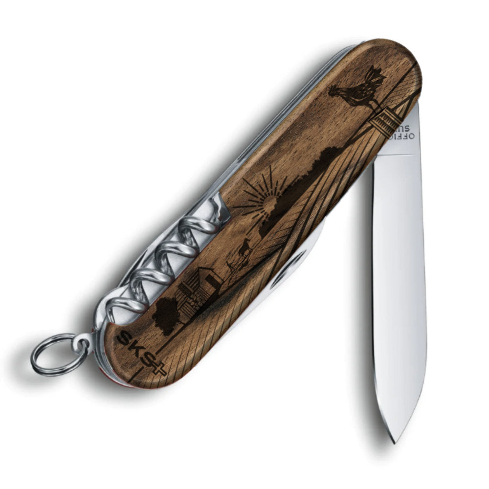 - Genuine Walnut Hardwood Handles with Exclusive Farm Design on the Victorinox Logo Side, and Room for Your Personalization on the Back Alongside Our Small Logo