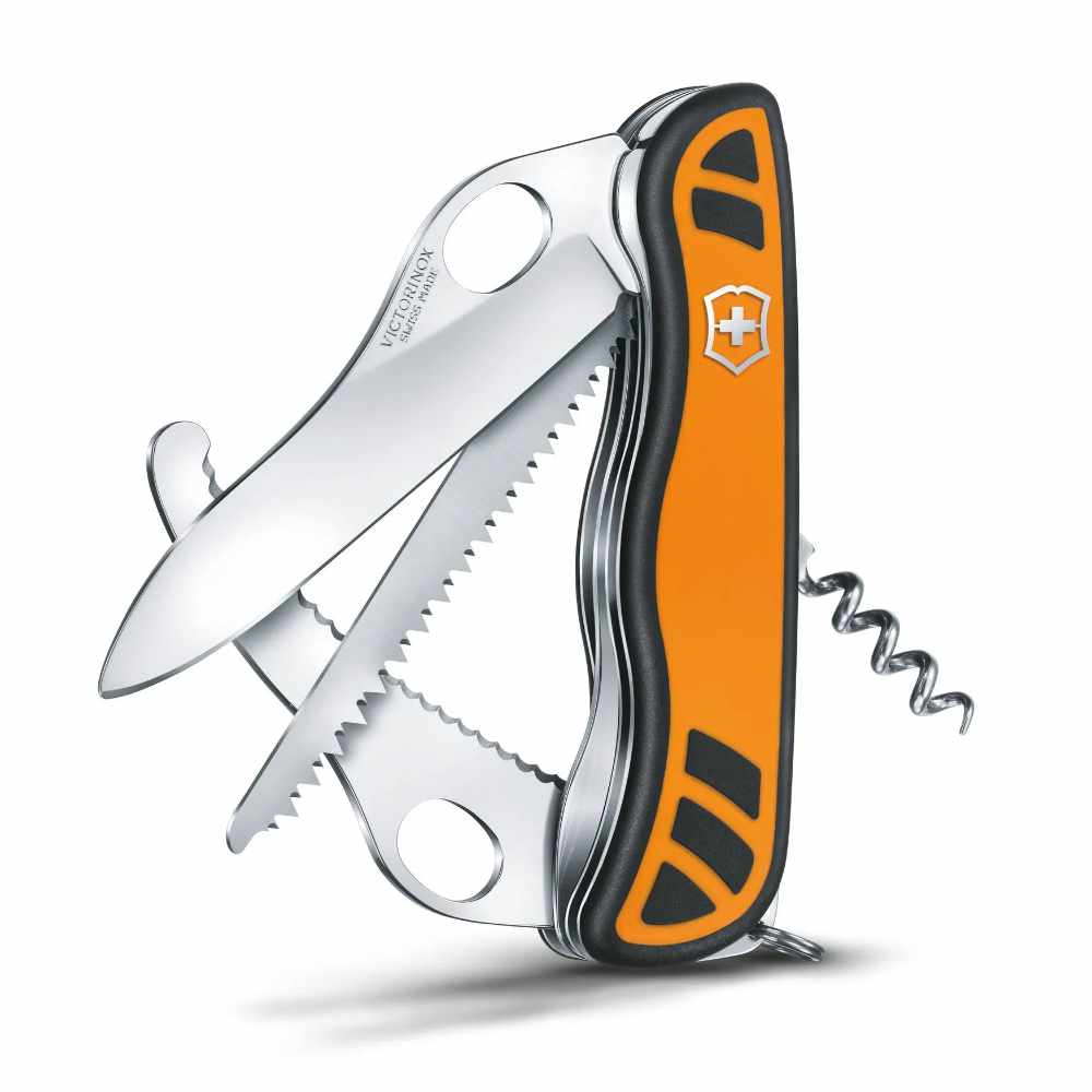 The Victorinox Hunter XST Orange Swiss Army Knife is the perfect hunting knife. It is equipped with high-visibility orange dual density handles to make it especially rugged and easy to hang on to in extremely cold or wet conditions, a one-hand locking blade, a gut hook, bone saw, screwdriver and key ring.
