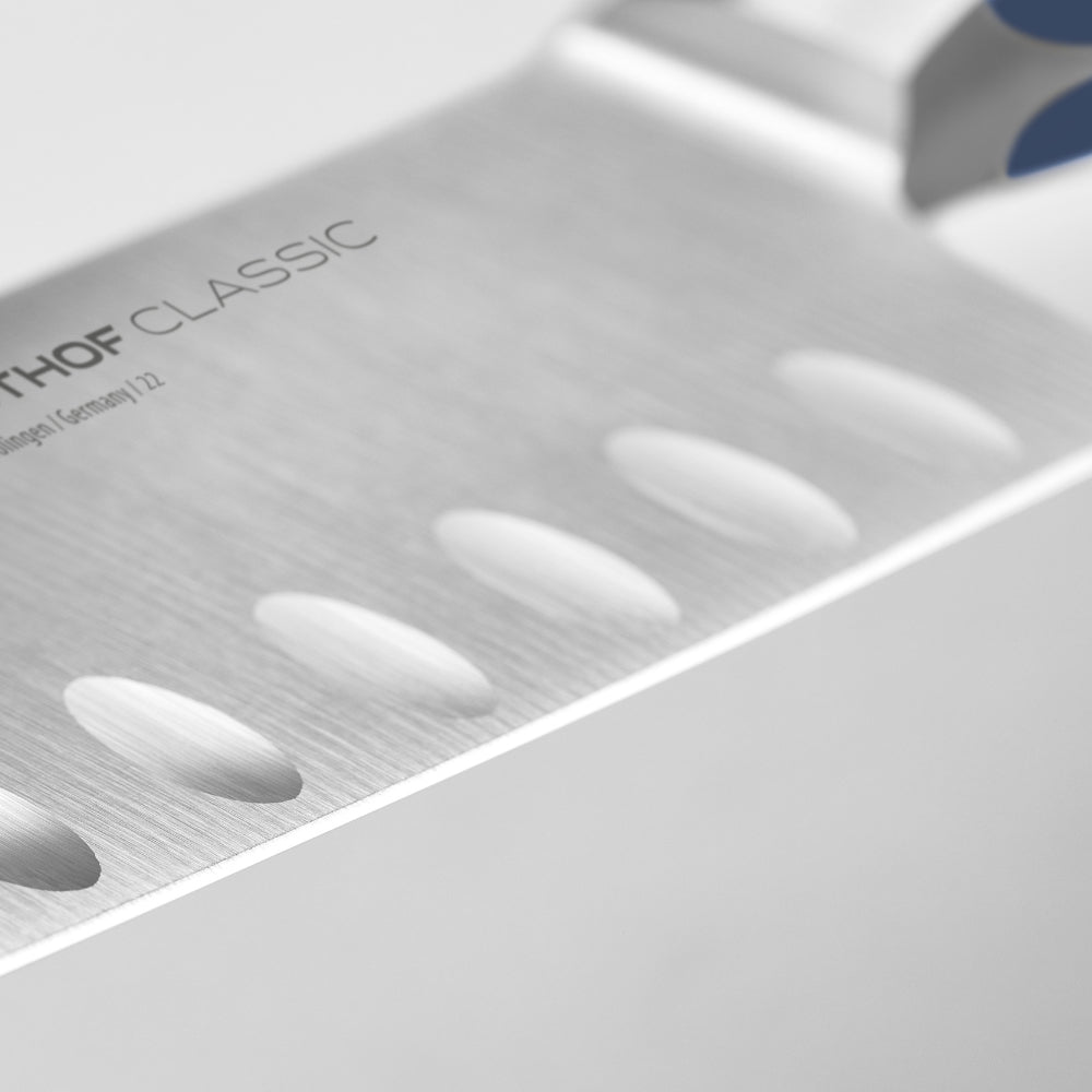Features of the Wusthof Classic 7" Hollow Edge Santoku Knife: