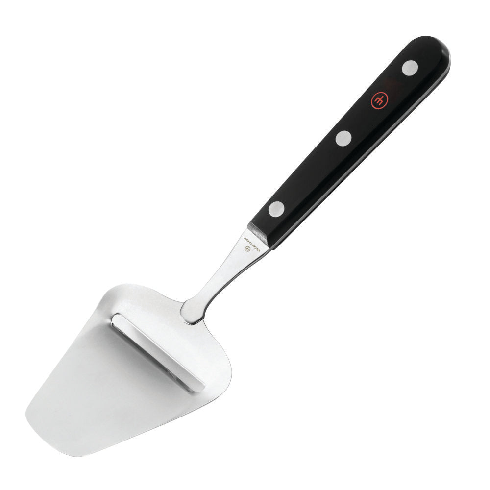 The Gourmet 4.75-inch Cheese Plane by Wusthof features the same high quality steel and comfortable riveted handle as the rest of the Wusthof Gourmet line. This cheese plane features a sharp blade designed to evenly and easily slice hard cheeses thick or thin.