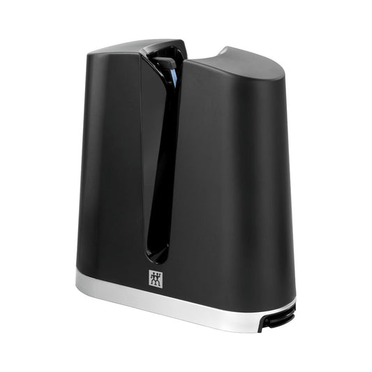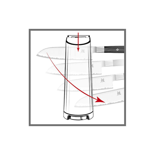 The Zwilling Pro series of kitchen knives by Zwilling J.A. Henckels combines sophisticated aesthetics and performance. The ergonomic, triple rivet handle of each knife fits the hand perfectly, while the unique wedge-shaped blade results in optimum stability and ease of cutting. The curved, diagonal bolster, which integrates seamlessly with the handle, allows for full use and sharpening of the entire length of the blade. Each Pro knife is designed by Milanese architect and designer Matteo Thun and forged in Germany with the patented SIGMAFORGE process, which achieves perfect geometry, high precision and improved stability, forging the entire blade and tang from one piece of this steel and each blade is hand-honed to assure that it stays sharper longer. The diagonal, curved bolster of each Zwilling Pro knife creates a full edge to the knife blade, enabling cutting along the whole length of the blade. This edge combines Japanese and European cutting culture.Though Pro knives are dishwasher safe, it is highly recommended that they be cleaned by hand.